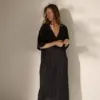 Luma Dress Anglaise fra moshi moshi mind er en let og elegant kjole med et afslappet, feminint udtryk. Kjolen er designet med en dyb V‑udskæring, mellemlange ærmer og et rummeligt snit, der falder smukt og ubesværet omkring kroppen.