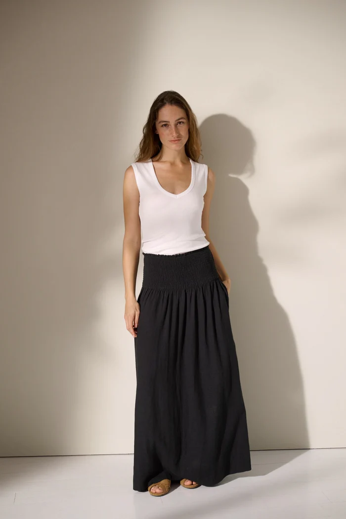 Malou Skirt Linen er et oplagt valg til dig, der ønsker et ubesværet, feminint look med fokus på funktion og komfort i varme temperaturer.