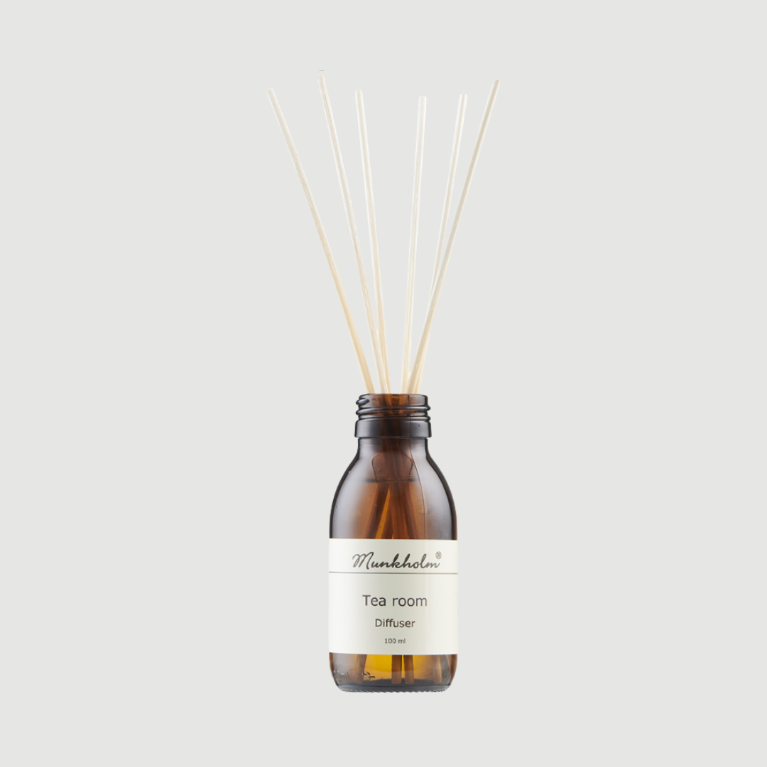 Diffuser Tea Room spreder en let, frisk og elegant duft, inspireret af den rolige stemning i en klassisk tea salon. Duften er fint afstemt med noter af verbena, bergamotte og cedertræ, som tilsammen skaber en behagelig og indbydende atmosfære.