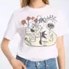 - Design: Rund hals, korte ærmer, kunstnerisk print af Niamh Birch
