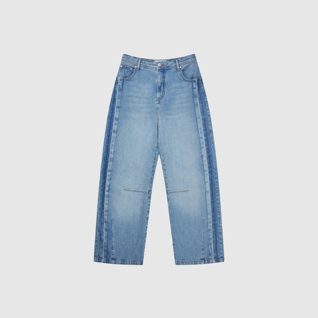 BODHI Pants er moderne jeans med en afslappet, bred pasform og et cool, workwear-inspireret look. Designet med paneler i siderne i mørkere denim, klassisk fem-lomme-design og detaljerede syninger forneden, giver bukserne et unikt og stilfuldt udtryk. Perfekte til både casual og edgy styling.