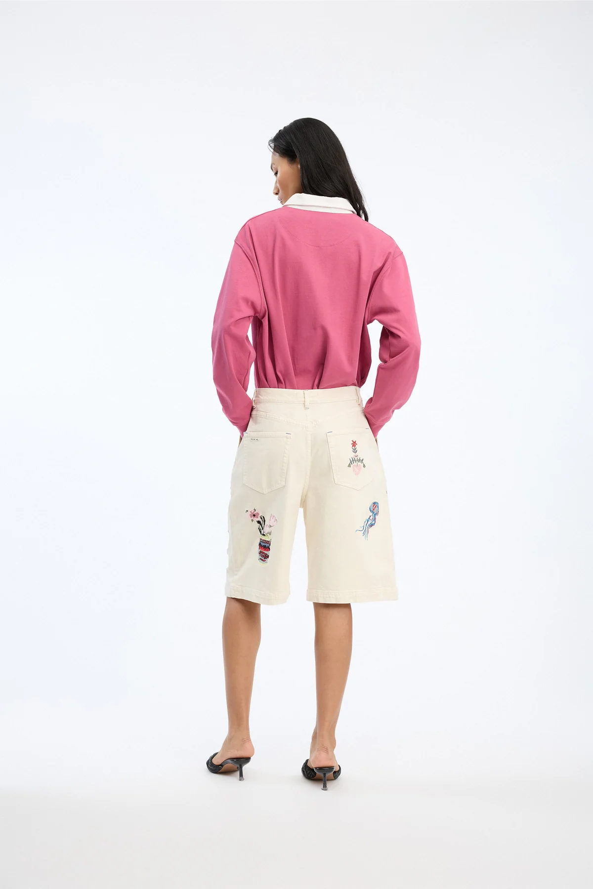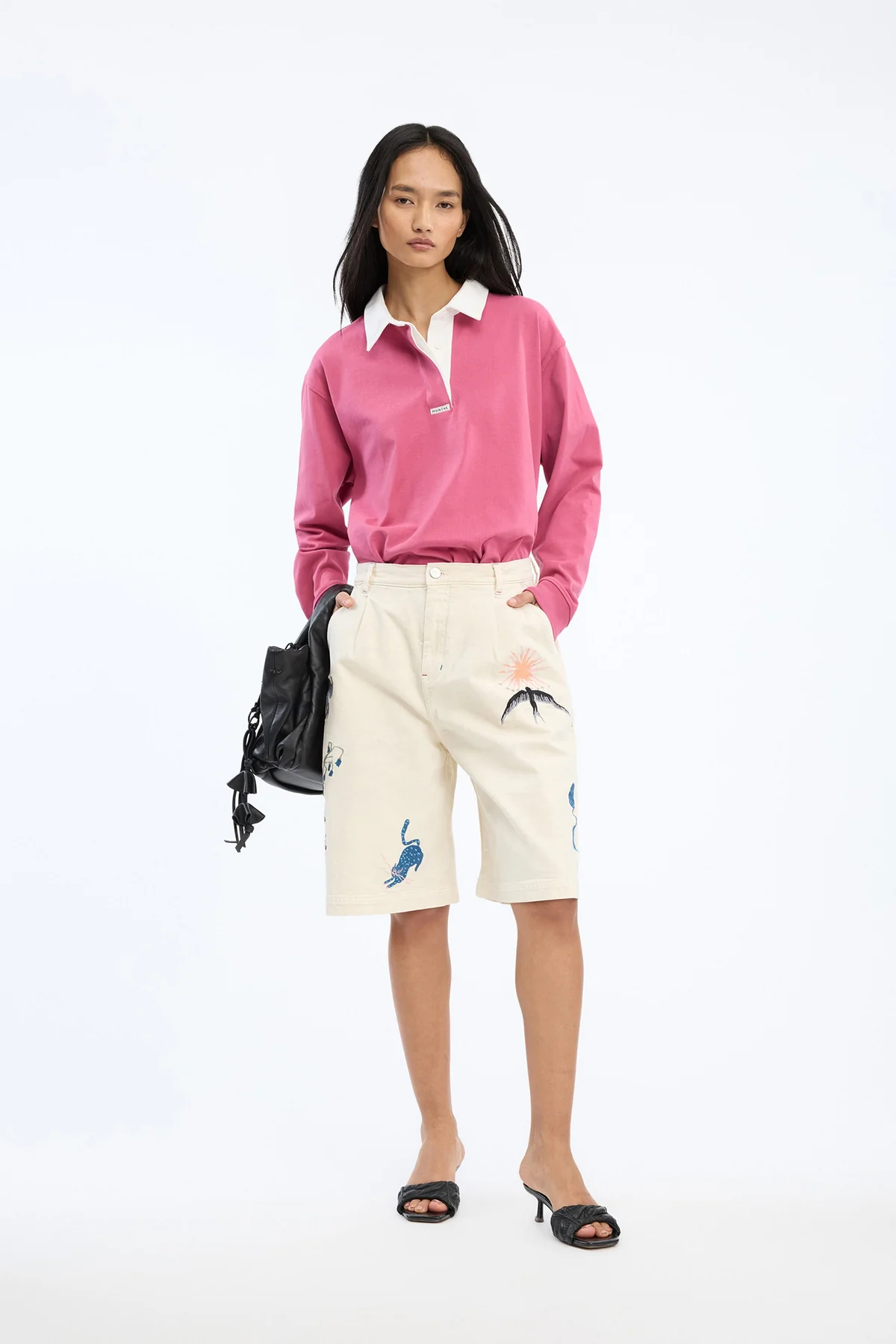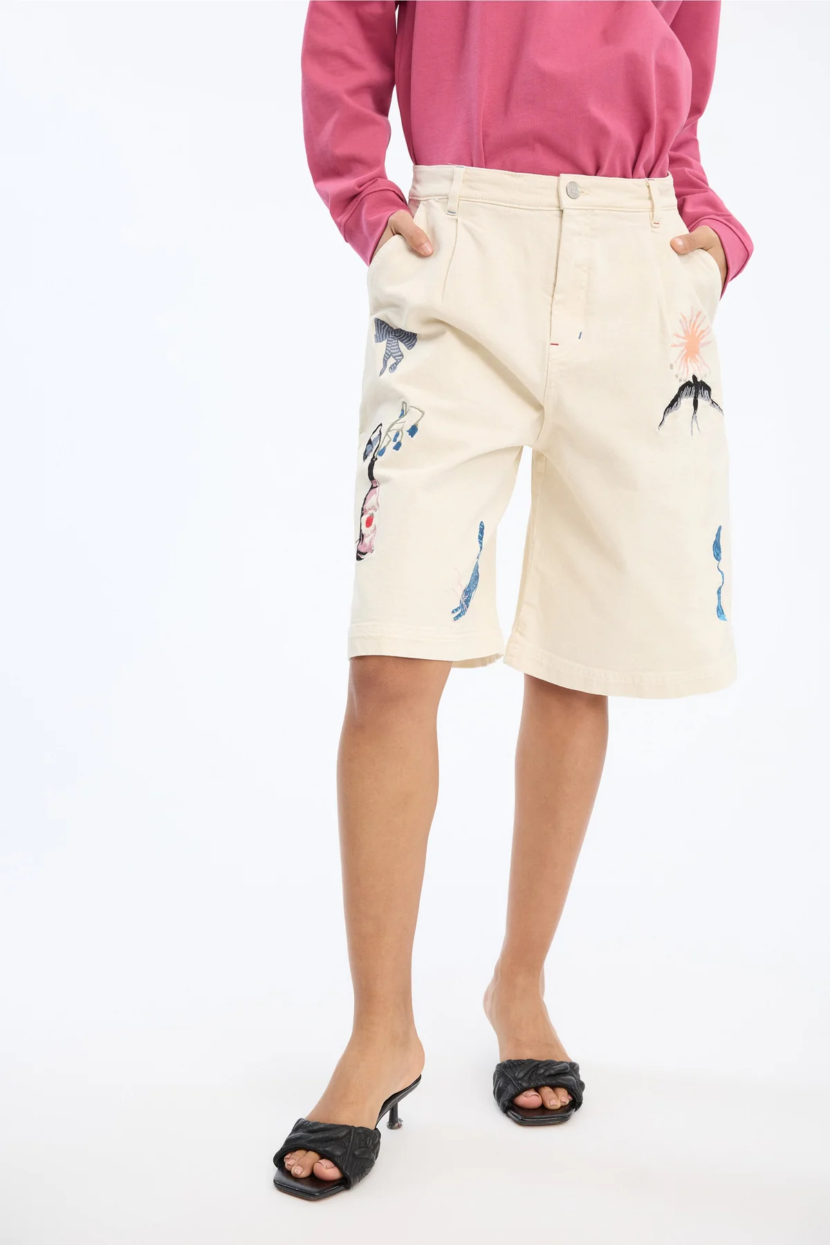 Shortsene har en afslappet, men stadig flatterende silhuet, der gør dem perfekte til både hverdagsbrug og mere stylingtunge looks. De skrå sidelommer giver et casual touch, mens bæltestropperne gør det muligt at tilføje et bælte og skabe en mere markeret talje. Detaljerne er en fin balance mellem det feminine, det praktiske og det kunstneriske – en æstetik MUNTHE mestrer.