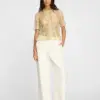 Bustona-toppen fra MUNTHE er en elegant, detaljerig og ultra‑feminin bluse skabt i smukt guldfarvet blonde. Blusen kombinerer klassisk skjorteæstetik med moderne delikate detaljer, hvilket giver et eksklusivt og sofistikeret udtryk.