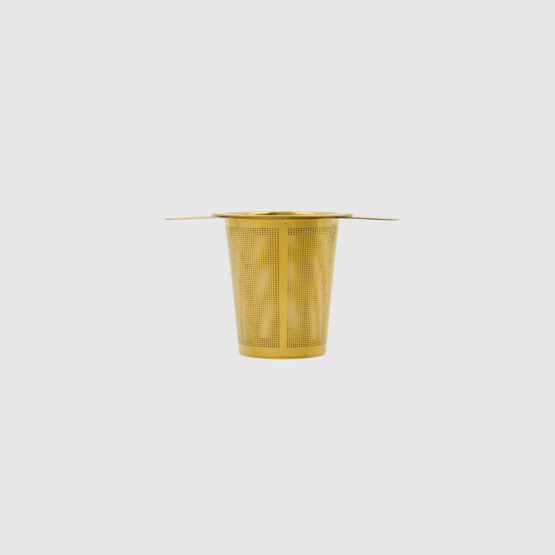 Tea Strainer NVTea er en elegant og funktionel tesigte i en smuk gylden finish. Den fine perforering i rustfrit stål sørger for optimal filtrering, så tebladene forbliver i sien, mens teens aroma får lov at udfolde sig fuldt ud. Den stilrene udformning gør den både praktisk i brug og smuk at have fremme – perfekt til te-entusiasten eller som en flot lille gave.