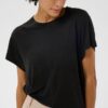 Den oversize pasform inviterer til bevægelse og giver et afslappet, ubesværet look, som sidder flot på kroppen uden at virke tungt eller voluminøst. Den draperer elegant ned langs overkroppen og skaber et minimalistisk, stilrent udtryk, der passer perfekt ind i den skandinaviske designtankegang. De korte ærmer understreger den lette følelse i materialet og gør stylen ideel til forårs- og sommermånederne – men den fungerer lige så smukt som et lag under strik, cardigans eller blazere i overgangssæsonerne.