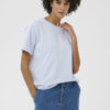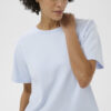 AnnePW T‑shirt har korte ærmer og rund hals, som understreger det klassiske snit. Den melerede heather blue farve gør T‑shirten let at kombinere med både lyse og mørke nuancer og gør den ideel til lag‑på‑lag styling under strik, skjorter eller jakker.