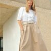 AsminaPW Nederdelen fra Part Two er en elegant og let midi-nederdel, der kombinerer et luftigt udtryk med en smuk, blød silhuet. Den er designet i et glat og let økologisk bomuldsmateriale, som giver en behagelig og naturlig fornemmelse mod huden. Nederdelen har en fuld, let svingende form, der skaber et feminint fald og gør den ideel til både hverdag og mere stilfulde anledninger.