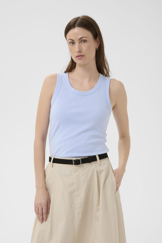 BessyPW Top fra Part Two er en klassisk og tidløs tanktop, der fungerer som et uundværligt basisitem i garderoben. Toppen har et ærmeløst snit og en lige pasform, som giver et rent og minimalistisk udtryk. Den brede, runde halsudskæring understreger det enkle design og gør toppen nem at style både alene og som en del af et lag‑på‑lag look.