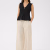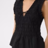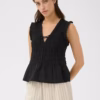 Toppen er ærmeløs og afsluttes med fine flæsekanter ved skuldrene, som giver et blødt og romantisk præg. Den let udstillede kant forneden skaber en flot silhuet og tilfører bevægelse til designet. BorgnyPW Top er fremstillet i 100 % økologisk bomuld, hvilket gør den let, åndbar og ideel til varme dage.