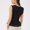 - Ærmeløs med flæsekanter ved skuldrene