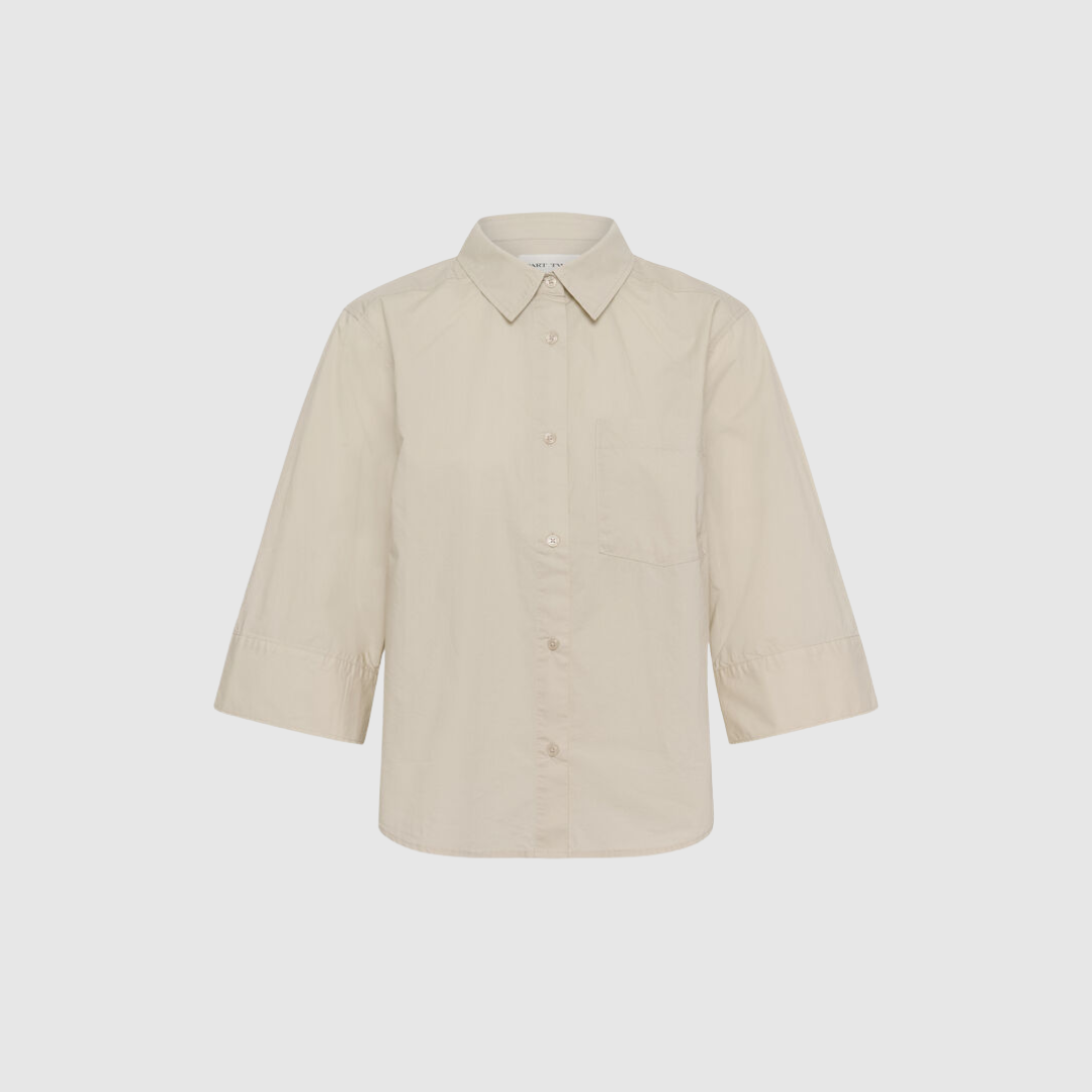 Skjorten er fremstillet i en vævet kvalitet, som giver struktur og et flot fald, samtidig med at den bevarer et rent og klassisk udtryk. En tidløs style, der hurtigt bliver en fast del af garderoben.