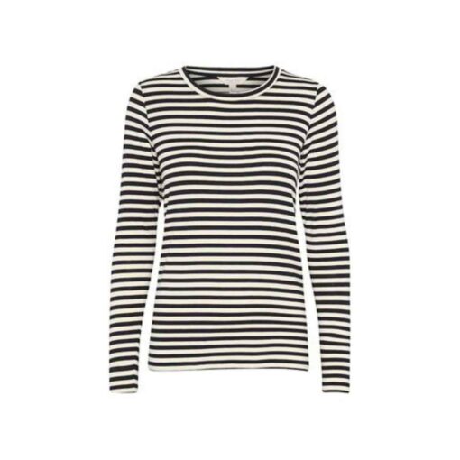 EmajaPW er en skøn basic langærmet t-shirt fra Part Two. Den har en rund halsudskæring, fine striber og kommer i et blødt og behageligt stof.