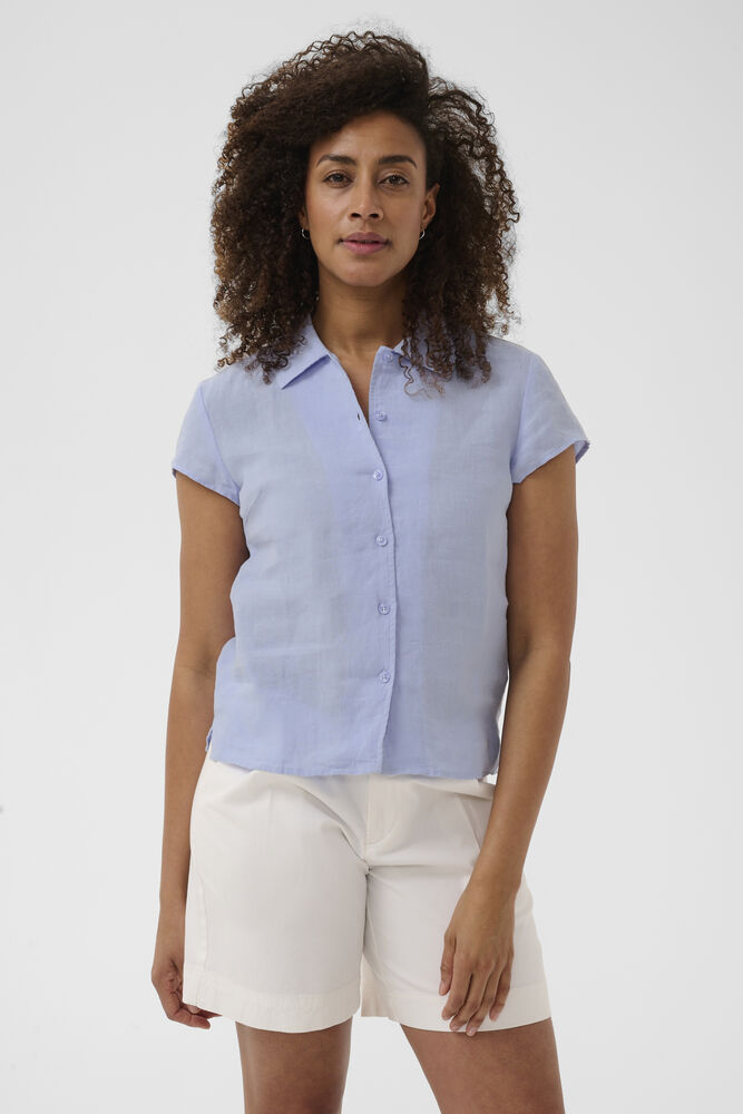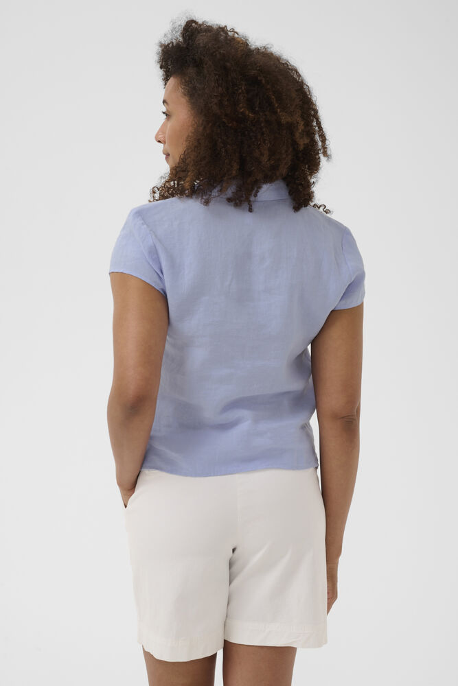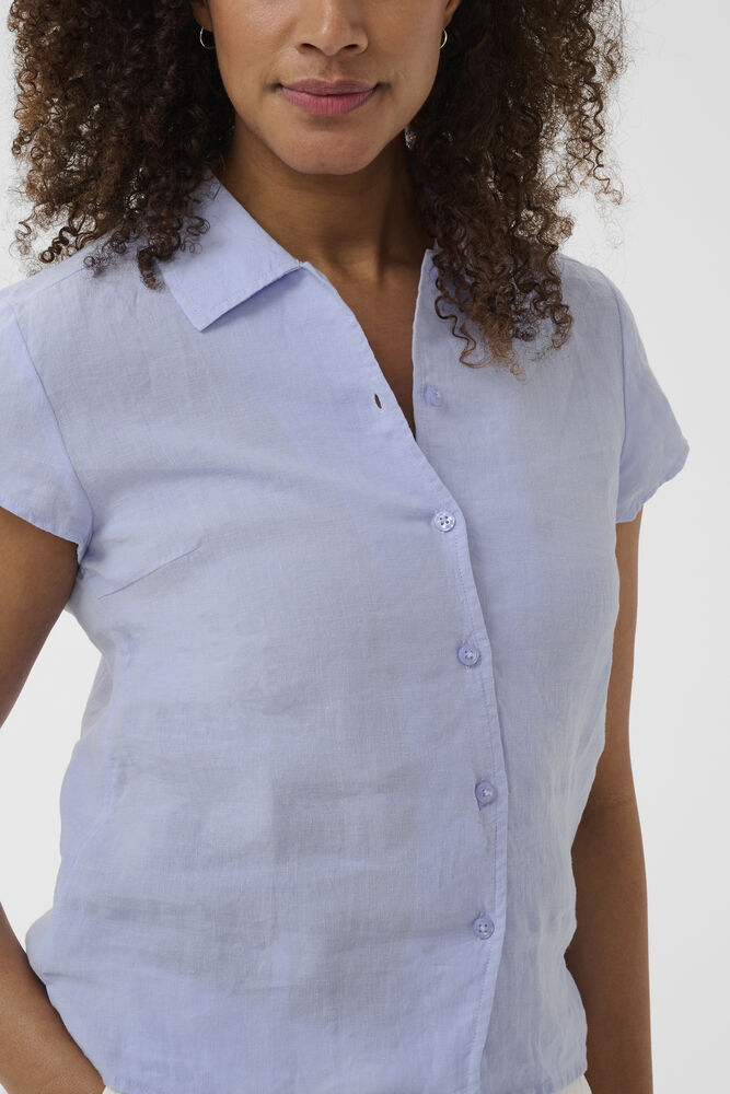 De korte cap sleeves tilfører skjorten et feminint og luftigt look, der gør den ideel til varmere dage. Samtidig giver den rene silhuet mulighed for nem styling – brug den alene med bukser eller jeans, eller kombiner den med et let lag over skuldrene, når vejret skifter.
