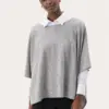 TILANNA PONCHO CAPE fra Part Two er en elegant og afslappet poncho-lignende top i grå. Den er designet med en bådudskæring, trekvartlange ærmer og en løs pasform, der giver et let og luftigt udtryk. Fremstillet i en blød strikblanding af uld, lyocell, polyamid og kashmir, som sikrer både komfort og stil. Perfekt til både hverdag og festlige lejligheder.