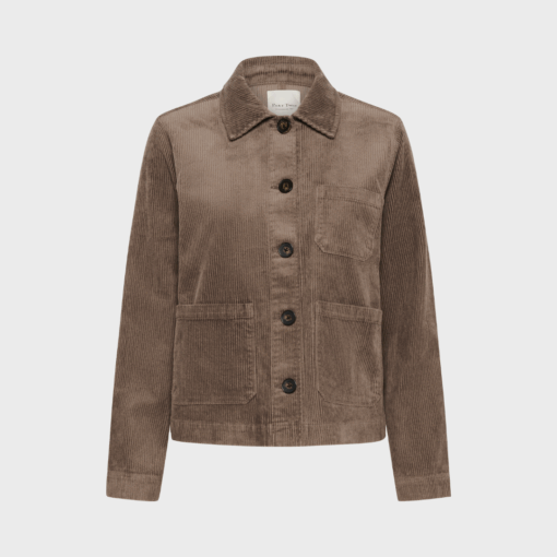 Fremstillet i en blød og holdbar vævet fløjlkvalitet, og i den elegante, gråbrune farve Falcon, giver jakken et moderne og anvendeligt look til både hverdag og overgangssæsoner.