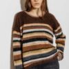 Denne Bolette Knit Pullover fra Project AJ117 er en luksuriøs og stilfuld striktrøje, der kombinerer blødhed, varme og et moderne design. Fremstillet i en eksklusiv blanding af super kid mohair, uld og elastiske fibre, giver den en let og fluffy kvalitet, som føles behagelig mod huden. De brede, flerfarvede striber i varme jordtoner gør trøjen til et iøjnefaldende statement-piece, perfekt til både hverdagsbrug og særlige lejligheder.