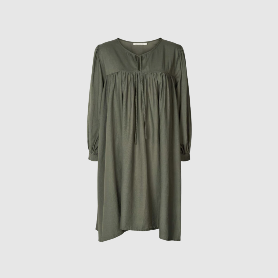ELDA COTTON FULL SLEEVE DRESS er indbegrebet af enkel elegance og komfort. Denne smukke, lette bomuldskjole har et tidløst udtryk og utallige stylingsmuligheder, hvilket gør den perfekt til både hverdagsbrug og weekendens afslappede stunder. Den luftige pasform, lange ærmer og feminine snøre i halsudskæringen giver kjolen et raffineret og sofistikeret look. Et musthave til dig, der elsker kvalitet og moderne, afslappet femininitet.