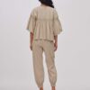 Papery Angle Seam Pants – Domino Sidiment er et par lette og luftige bukser, der kombinerer komfort og afslappet elegance. Det bløde materiale giver en behagelig fornemmelse mod huden, og de løstsiddende ben skaber et ubesværet, moderne udtryk. Bukserne er designet med elastiske manchetter og en justerbar elastisk talje med snøre, der sikrer en fleksibel og velsiddende pasform.