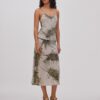 Silhuetten formes af det flatterende bias‑cut, der elegant omfavner kroppens former, mens den elastiske talje sikrer en komfortabel og fleksibel pasform.