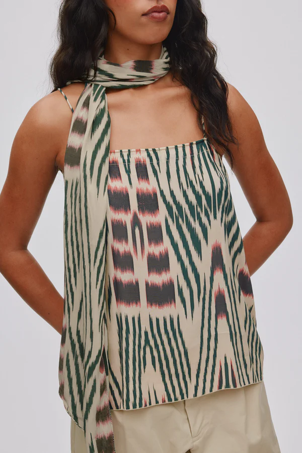 Rabens Saloner – Tatiana Ikat Tie Scarf – Forest Pink Sand