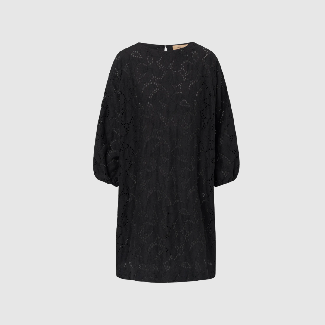 Decia Soft Lace Dress i Black fra Rue de Tokyo er en elegant og moderne kjole med et feminint udtryk. Den bløde bomuldskvalitet giver kjolen en let og behagelig fornemmelse, mens snittet skaber en afslappet og tidløs silhuet. Kjolen har en smuk bådhalsudskæring og puffede ærmer med snøre, der tilfører et raffineret twist. Længden, der går til lige over knæet, gør kjolen anvendelig til både hverdag, middag og særlige lejligheder. Et stilrent design med fokus på detaljer – præcis som Rue de Tokyo er kendt for.