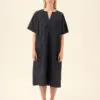 Kjolen har en smuk V‑udskæring og korte ærmer, som skaber et feminint og afslappet look. Den A‑line formede silhuet giver kjolen et smukt fald og gør den ekstra behagelig at bevæge sig i. Praktiske patchlommer foran samt syningsdetaljer ved krave og lommer understreger Rue de Tokyos karakteristiske fokus på minimalisme og kvalitet.