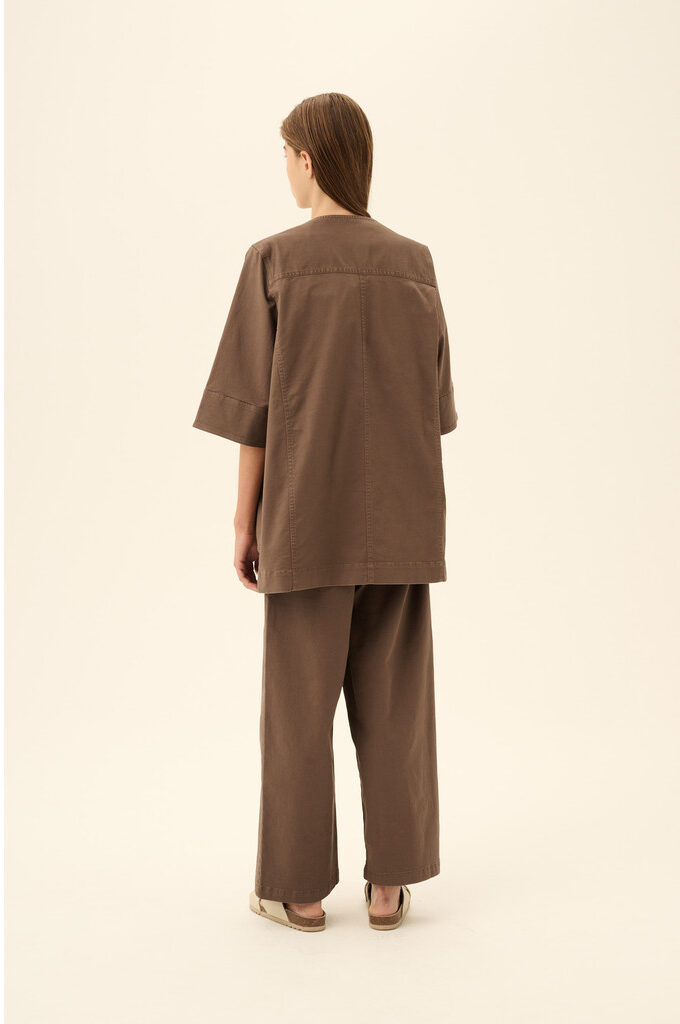 CATIA TWILL er en moderne og funktionel lang arbejdsjakke designet i en afslappet pasform, perfekt til foråret og sommerens lag‑på‑lag looks. Den dybe V-udskæring skaber et stilrent udtryk, mens de store påsyede lommer giver praktisk anvendelighed. De elegante sømlinjer for og bag samt bærestykket bagpå tilføjer et eksklusivt finish. Jakken har en flatterende midt‑lår længde, som gør den både alsidig og nem at style til mange anledninger. Sæt jakken til matchene bukser Rue De Tokyo – Patrice Twill – Malt Brown.