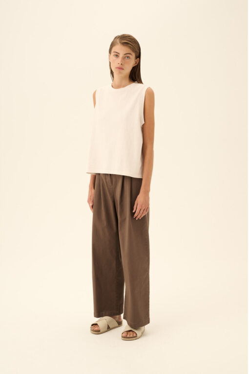 TAINA LIGHT GMTD JERSEY er en alsidig og stilren ærmeløs top, der løfter enhver garderobe. Designet med fokus på kvalitet og komfort, gør den sig perfekt til både hverdagsbrug og mere formelle lejligheder. Den runde halsudskæring og afslappede pasform giver et tidløst udtryk, der er nemt at kombinere med alt fra jeans til feminine nederdele. En klassisk musthave style, der aldrig går af mode.
