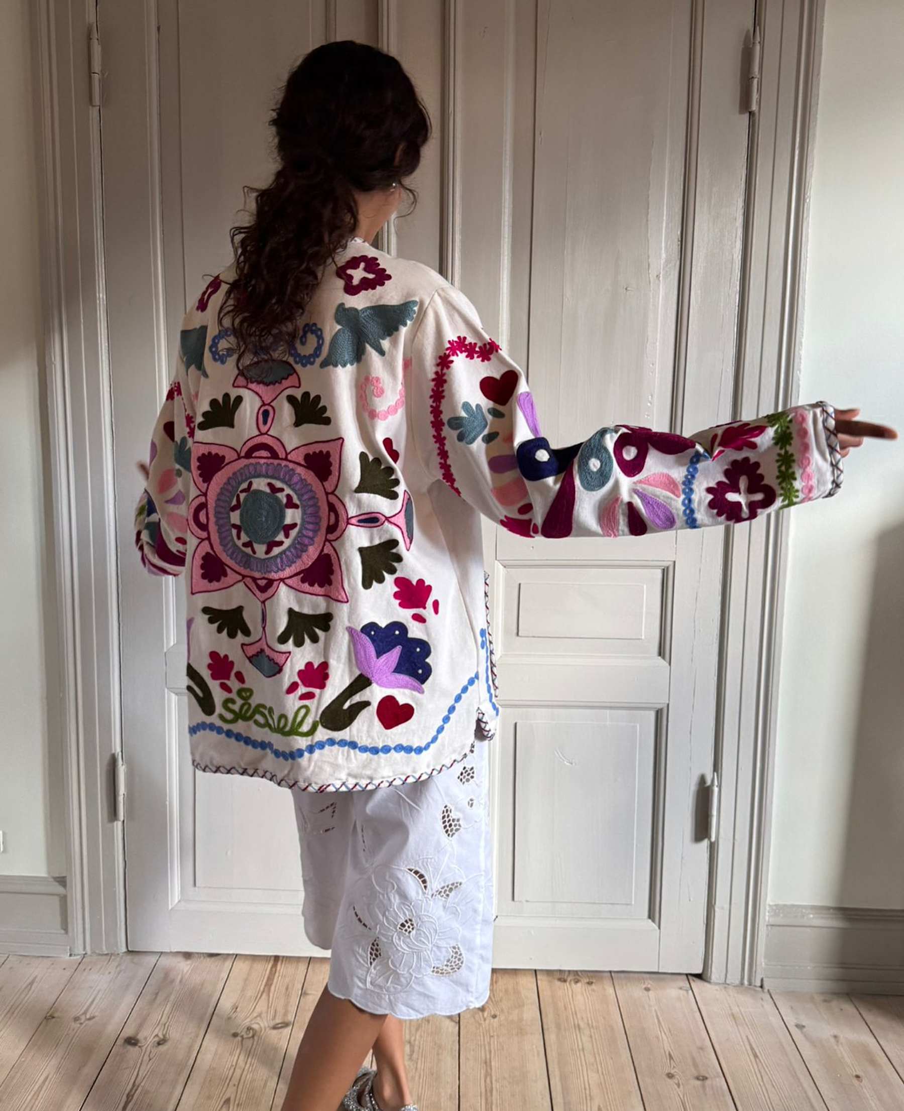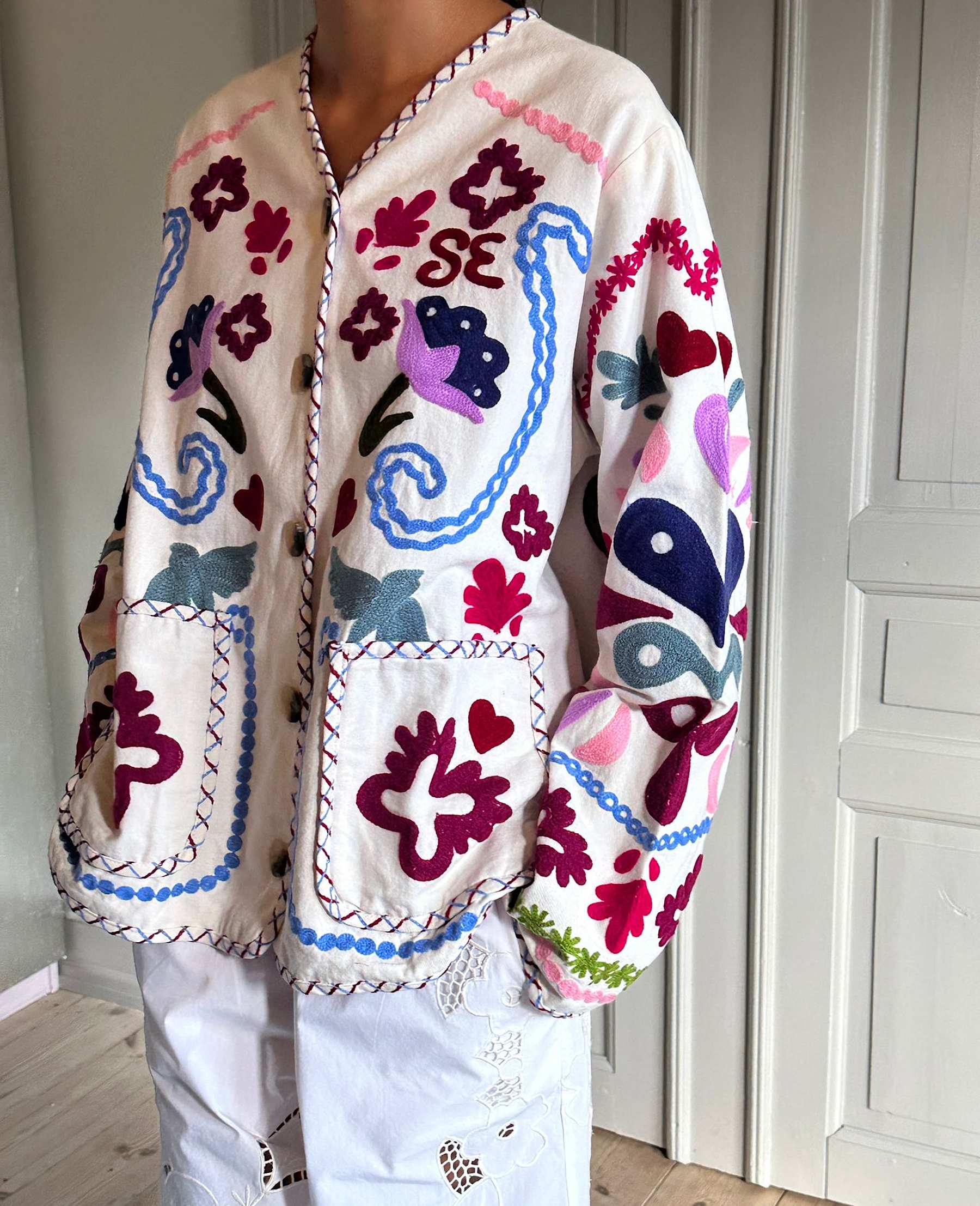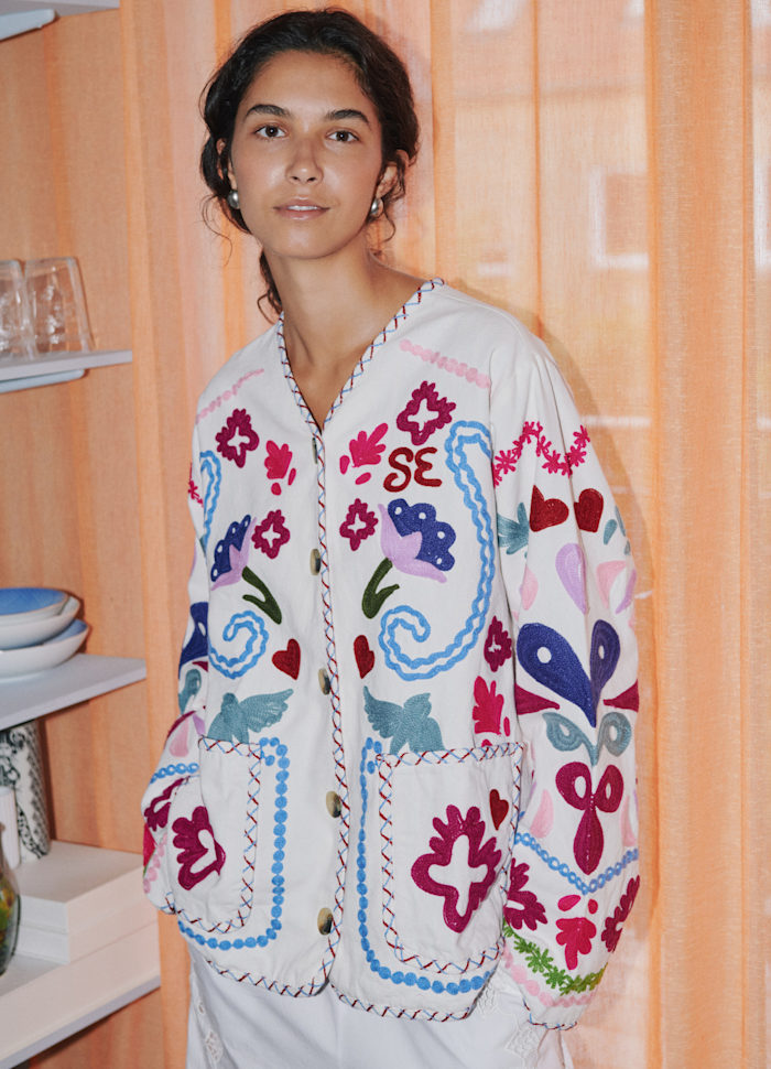 - Suzani‑broderi over hele jakken