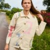 My Jacket er en smuk og kreativ jakke fremstillet i 100% økologisk bomuldscanvas. Jakken har en afslappet pasform med skjortekrave, lange ærmer og knaplukning foran med knapper i bone-look stil. De to praktiske lommer giver et funktionelt udtryk, mens de farverige, poetiske broderinger – inspireret af vintage servietter – tilføjer et unikt og kunstnerisk touch. En statement-jakke, der skiller sig ud i enhver garderobe.