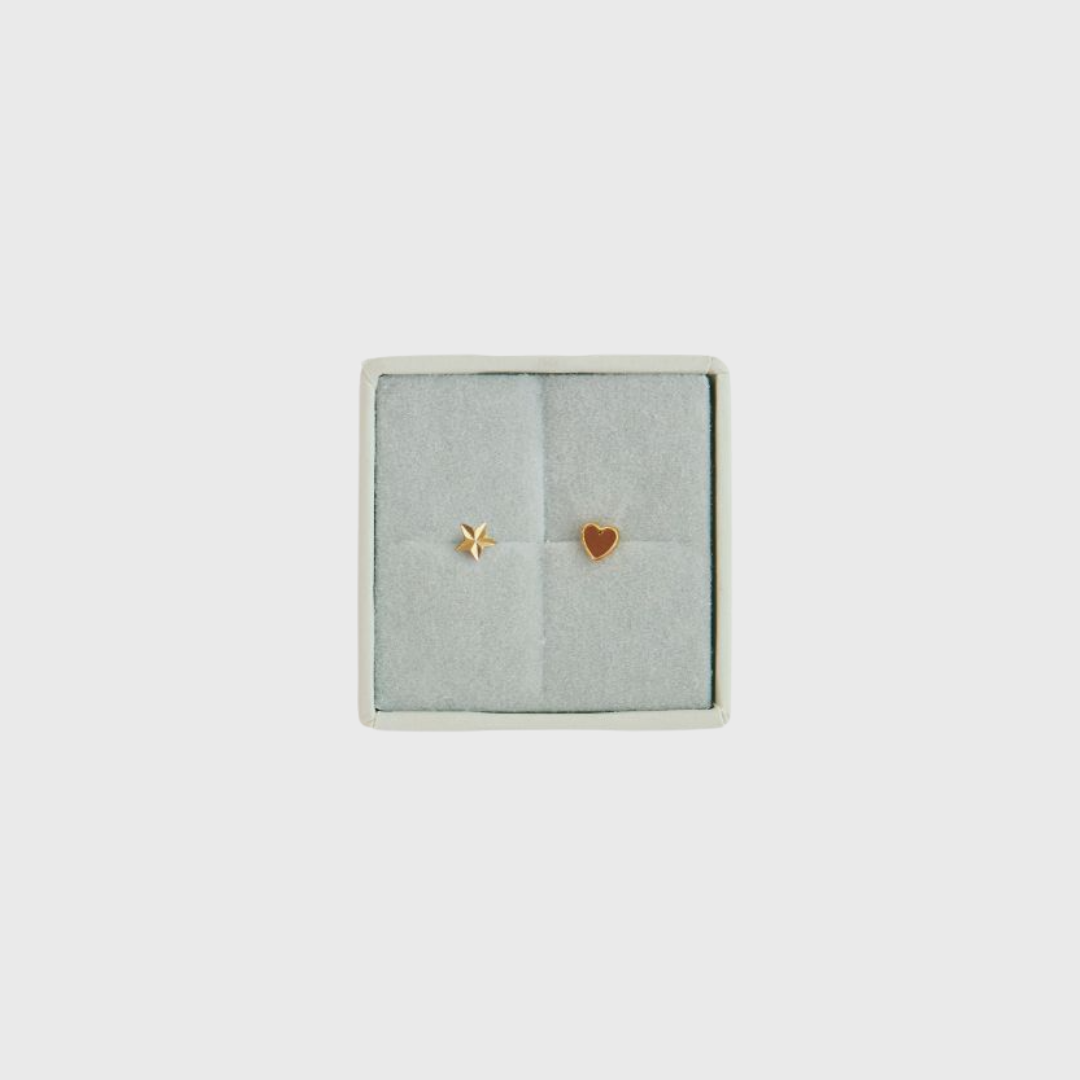 Love Box – Star Love fra STINE A Jewelry er en charmerende smykkeæske med to fine ørestikker i forgyldt sterlingsølv med smukke emaljedetaljer. Øreringene matcher hinanden perfekt og kan bæres som et asymmetrisk par eller kombineres med andre STINE A smykker for et personligt udtryk. Den ideelle gave til dig selv eller en særlig person, der fortjener lidt ekstra kærlighed og elegance i hverdagen.