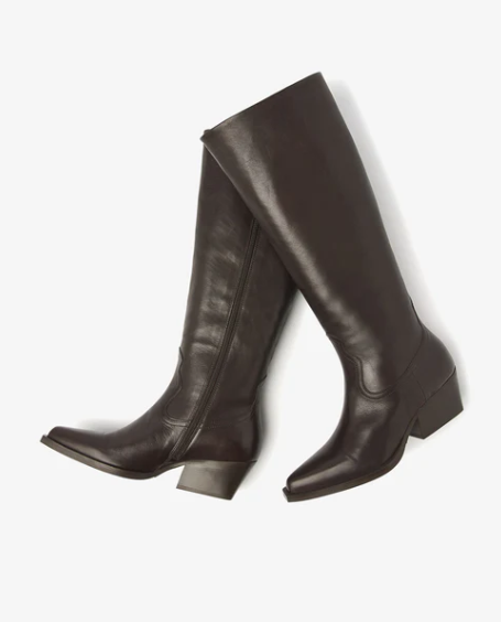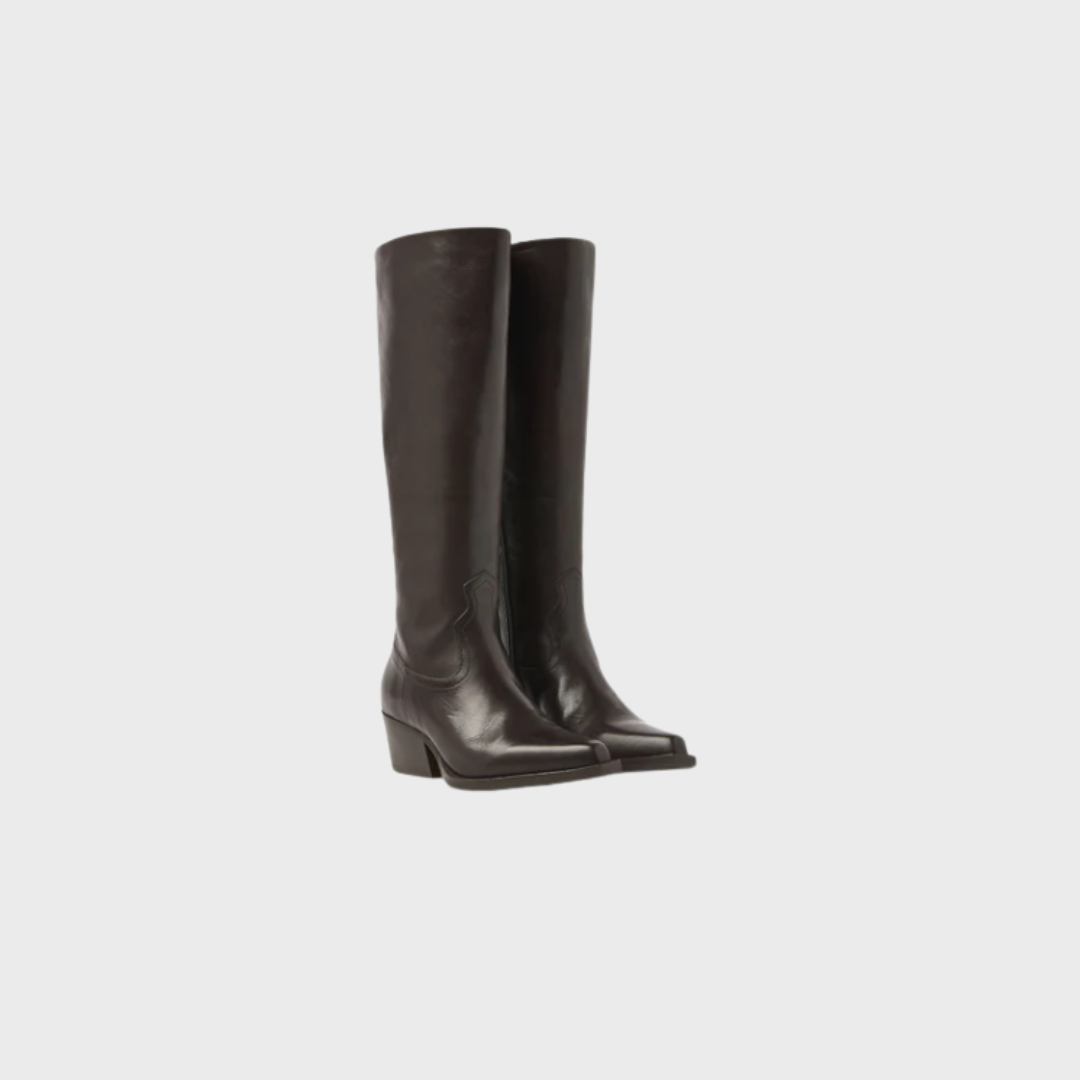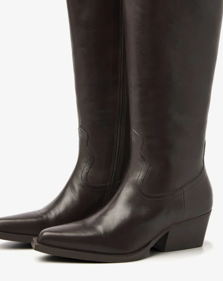 Do Ashley fra VIA VAI er en høj læderstøvle med et minimalistisk og sofistikeret udtryk. Den skrånende blokhæl og lige snude giver et subtilt western-touch, mens den slanke silhuet gør støvlen nem at style med både kjoler, nederdele og jeans. En funktionel lynlås på indersiden sikrer nem påtagning, og den håndlavede kvalitet fra Portugal garanterer komfort og holdbarhed.